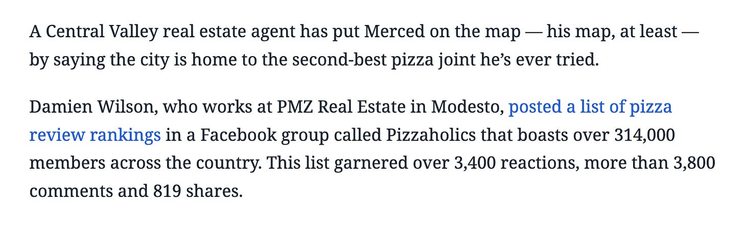 Redditors were helpful for planning my trip, even if some of them were a little withering in their descriptions of their modest city. Every time I found a thread about “fun things to do in Merced”, a lot of the answers were some variation of “leave.” But my favorite comment came from calikid1121: “im going to give it to u straight, U make life fun if u live in this merced.” No, exactly. That’s exactly the attitude. U make life fun. Great advice to take with you wherever you go in this world.